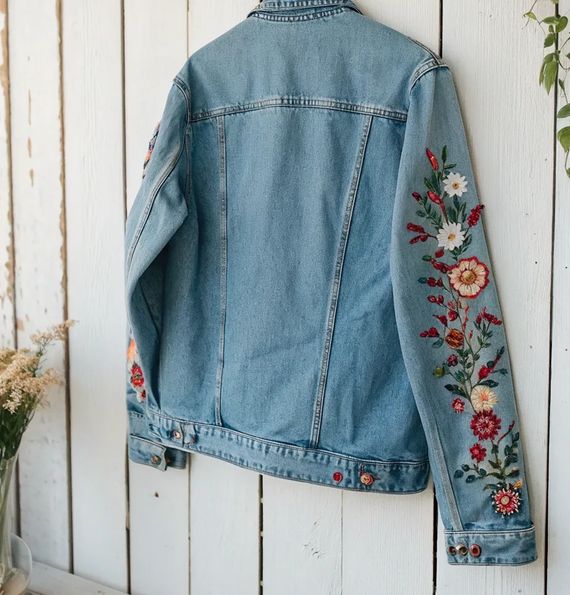 - Travel-inspired embroidered patches: Add unique flair with travel-themed patches, showcasing your adventures on your denim jacket!