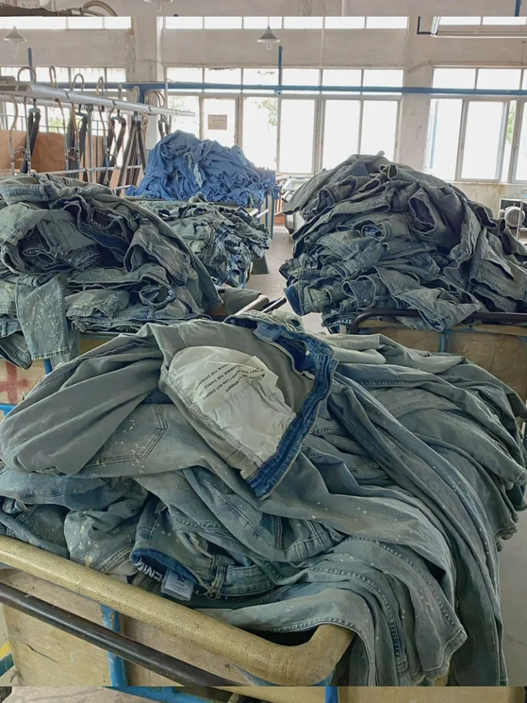 - Washing & Finishing (The Denim Atelier): This is where denim truly comes to life. The manufacturing partner’s washing facility is its creative heart. Techniques can include:
