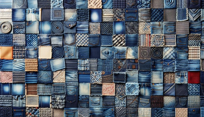 Denim is woven in a twill weave with indigo-dyed warp threads, creating a durable, diagonal-ribbed texture and its classic two-tone appearance.