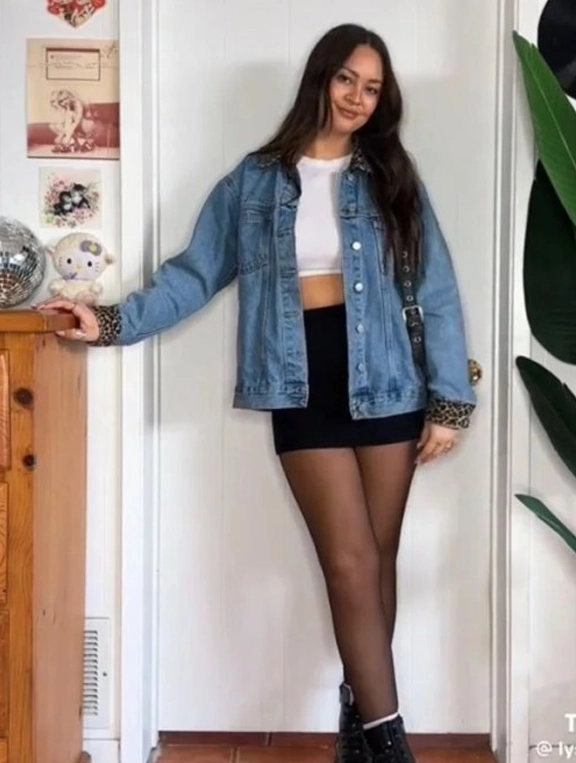 For a relaxed, Y2K-inspired look, pair a printed t-shirt with baggy jeans and top it off with a denim jacket. This effortlessly cool outfit is perfect for streetwear lovers.