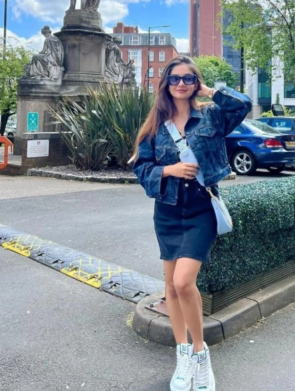 white top and trouser combo is crisp and clean. The cropped denim jacket keeps things trendy, while sneakers ensure you stay comfy all day long.