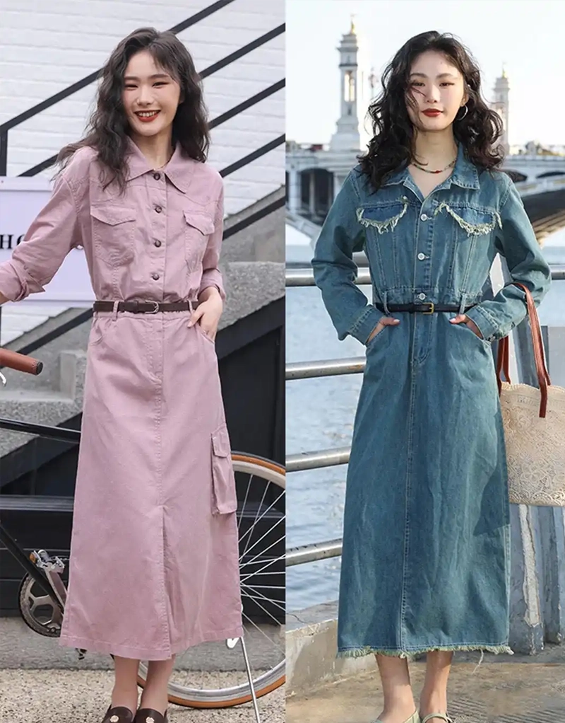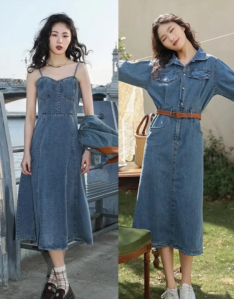 - Premium Denim Selection: We offer a vast library of denim fabrics—from rigid raw selvedge and soft stone-washed stretches to innovative eco-friendly blends and colored denims. The weight, wash, and hand-feel of the fabric dictate the dress’s drape, comfort, and ultimate style direction.